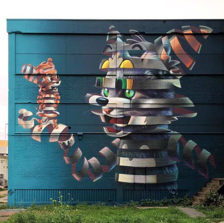 Zo schilderde Tymon de Laat een portret van Oscar, een jongere die via Bon Sjans zijn leven weer op de rit probeert te krijgen. Met een slimme ingreep in de muur zelf lijkt hij letterlijk zijn hoodie van zijn hoofd te schuiven wanneer de garagedeur opent. Super A transformeert klassieke tekenfilmfiguren tot een surrealistische boodschap over beeldvorming, en Danny Rumbl laat zijn kleurrijke haan haast van de muur aflopen in zijn herkenbare, cartooneske stijl.